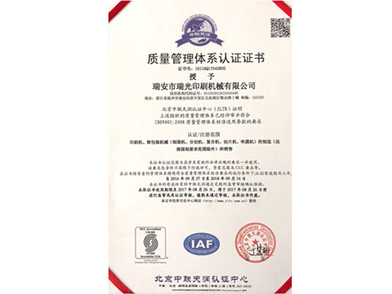溫州市瑞光印刷機械有限公司是生產銷售凹版印刷機、復合機、分切機、制袋機等設備的廠家。 主打產品“機組式經濟型凹版印刷機”暢銷國內各省市,并遠銷歐洲、東南亞等十多個國家。長期以來,公司致力于印刷包裝機的研究、開發及生產,利用瑞安這個“中國印刷機械設備城”之得天獨厚的生產和加工優勢,博采眾長,不斷研究、提高、完善,使產品逐步突顯其性能和可靠性.....